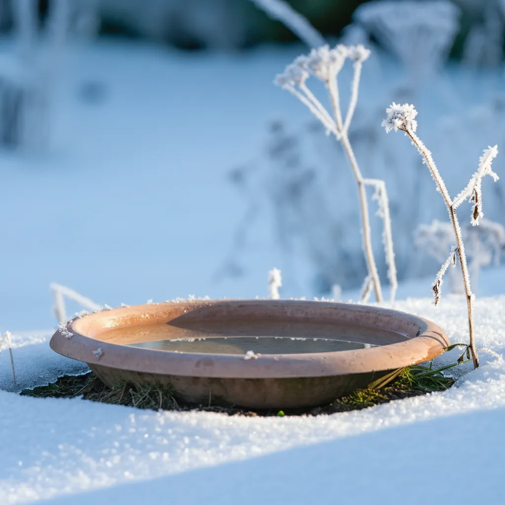Here's a simple trick to prevent water from freezing: place a light ball, such as a ping-pong ball, in your birdbath. Wind movement will keep the ball moving, disrupting ice formation and maintaining access to liquid water for longer periods.