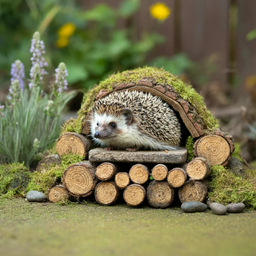 Create a simple log pile using fallen branches, twigs, and autumn leaves. Stack logs of varying sizes in a quiet corner, filling gaps with smaller twigs and covering the pile with leaves. This structure offers hibernation spots for hedgehogs, shelter for toads, and overwintering sites for beneficial insects like ladybirds and lacewings.