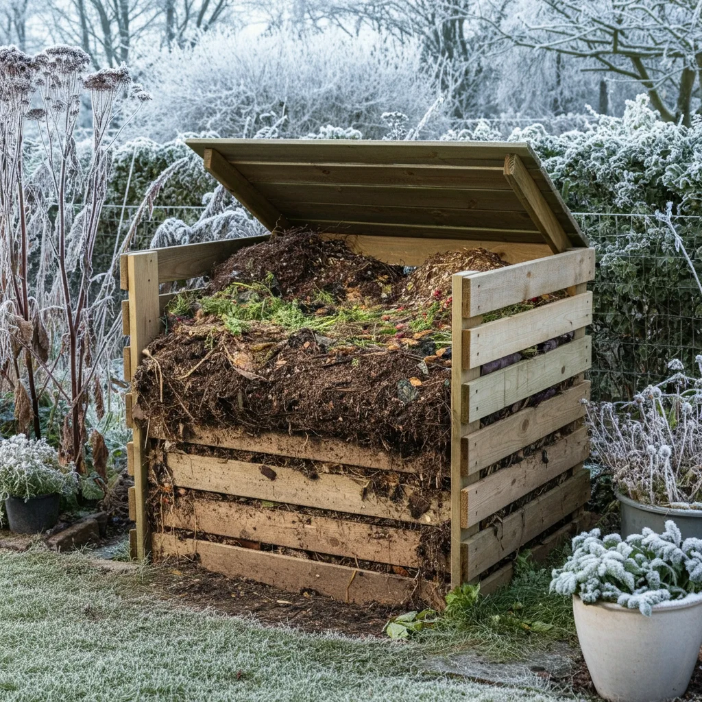 Moisture control prevents common winter composting problems. Autumn and winter rainfall can waterlog outdoor compost, creating anaerobic conditions that produce unpleasant smells and slow decomposition. Cover compost with breathable materials like old carpet or tarpaulins that shed rain while allowing air circulation.