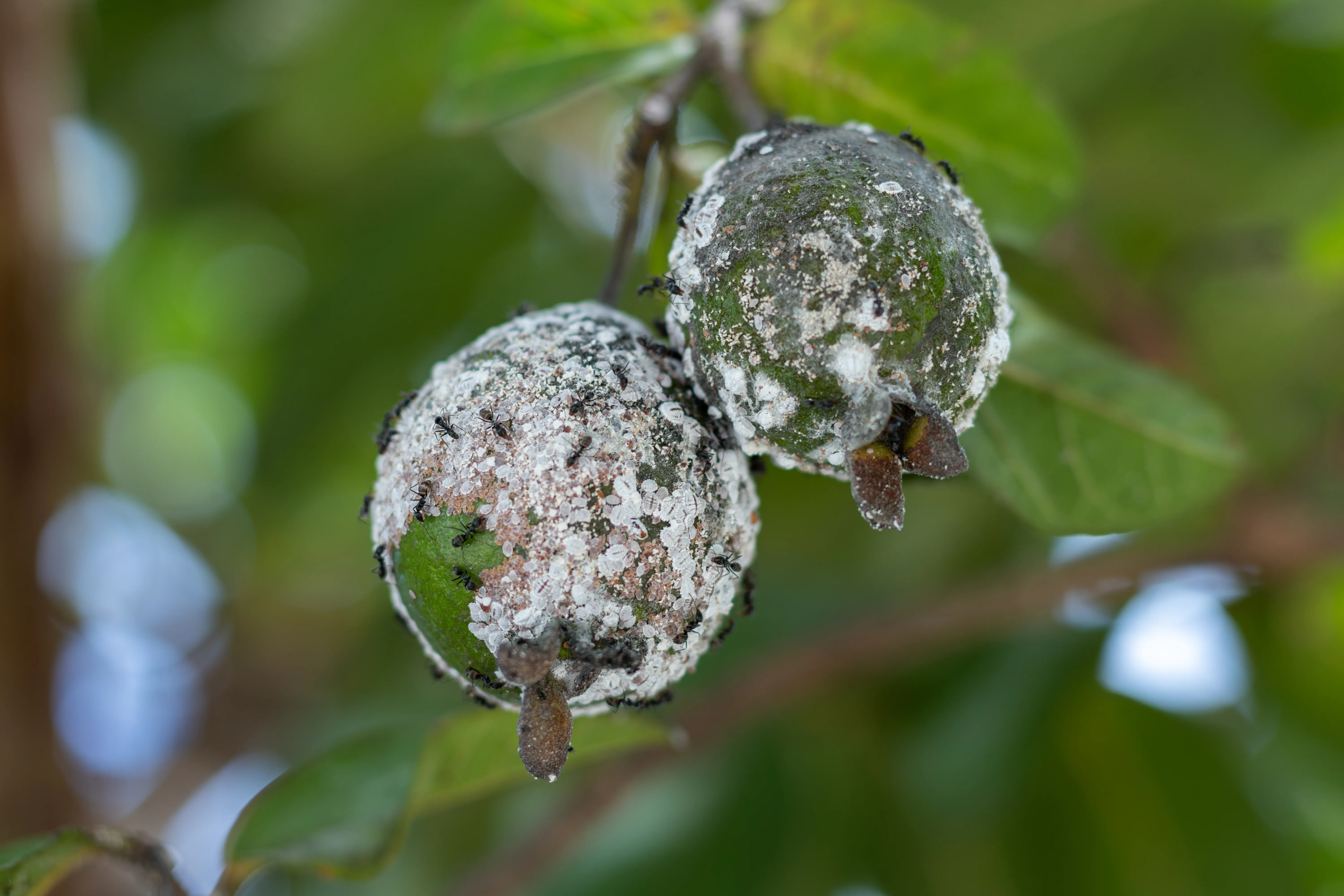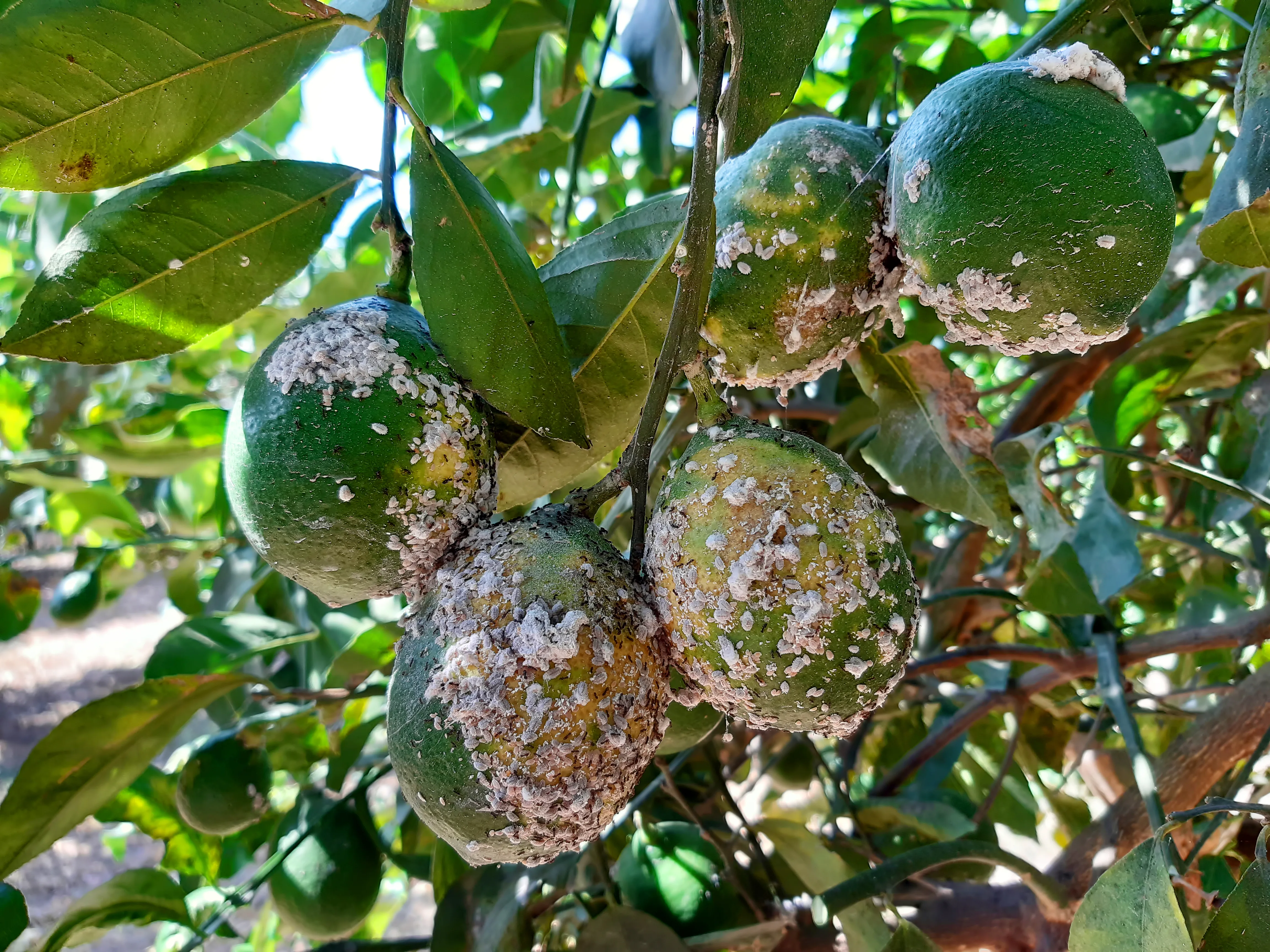 - Sooty mold fungus, which grows on the honeydew (a sticky substance) excreted by the mealybugs.