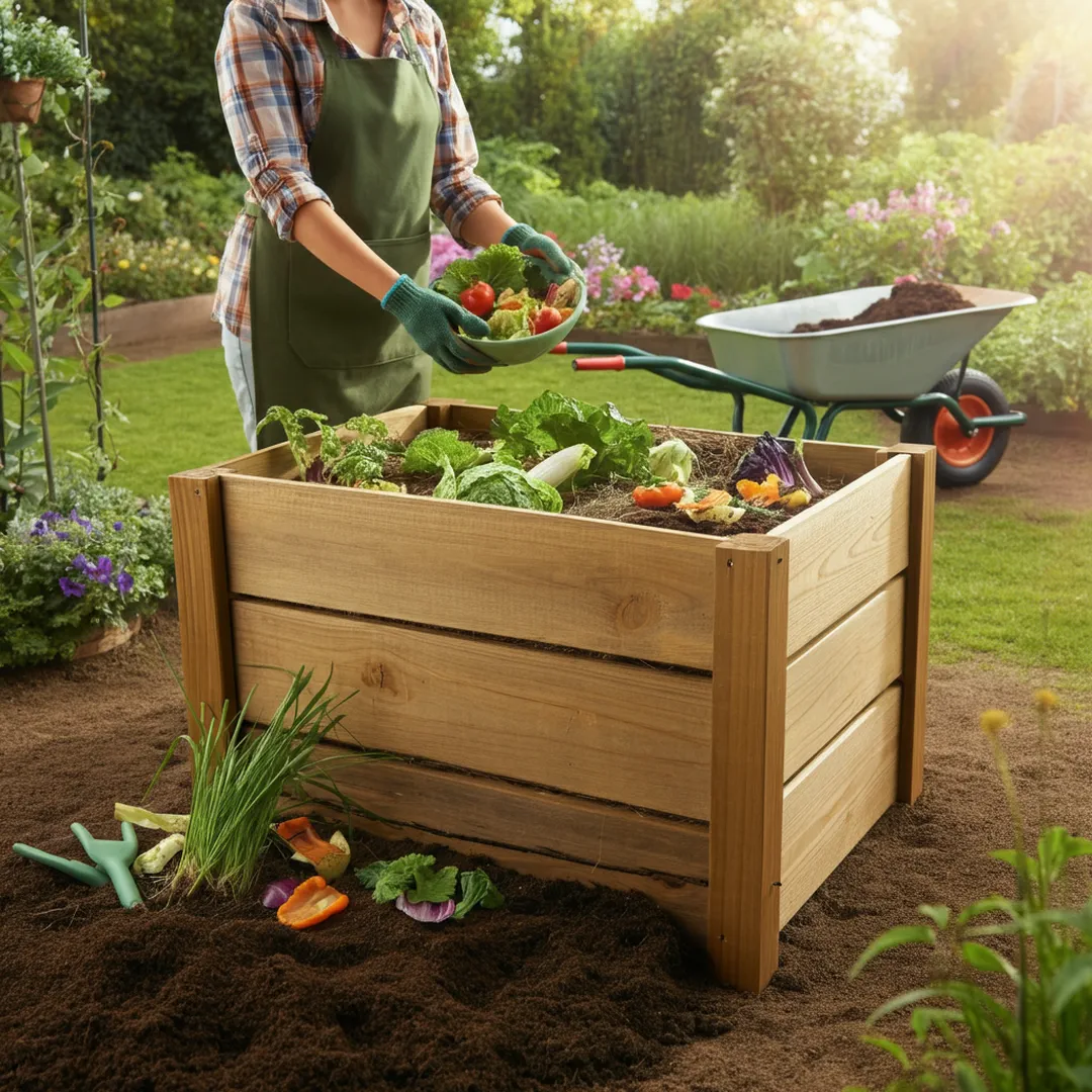 You don't need fancy equipment to begin composting. A simple bin made from pallets or wire mesh works perfectly. The key is balancing 'greens' (nitrogen-rich materials like vegetable peelings, grass clippings) with 'browns' (carbon-rich materials like dried leaves, paper, cardboard).