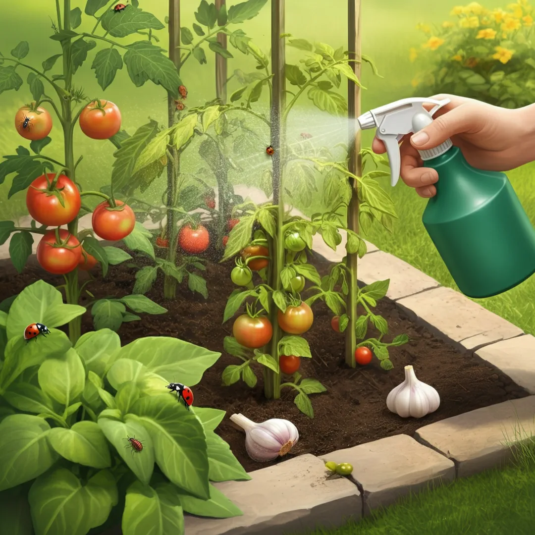 Garlic spray: Blend 3 cloves garlic with 1 litre water, strain, and spray for general pest deterrent.