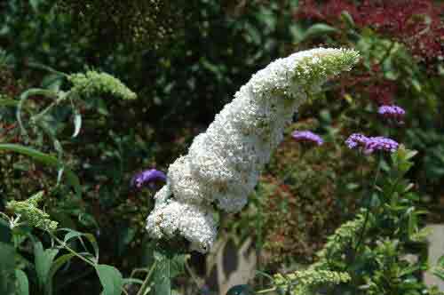 L-r = Buddleja White Bouquet/Profusion: B. Lochinch; B d. Royal Red: Buddleia davidii Empire Blue.
