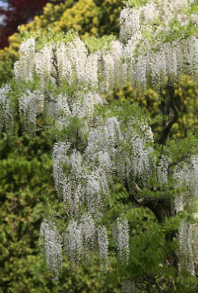 L to R - Wisteria floribunda 'Alba' : Wisteria floribunda